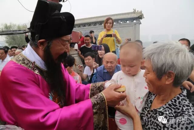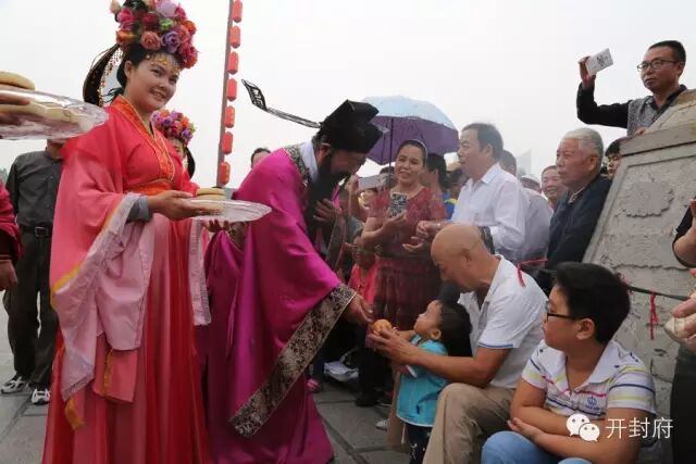 并为游客们送上金秋月饼,赢得了游客们的阵阵喝彩与掌声。包大人把月饼与祝福送给各地游客与小朋友,小朋友开心的满脸笑容合不拢嘴。来自山东的游客说:“我们一家在开封府品位到了厚重的历史文化蕴涵;感受到了宋代府衙建筑的恢弘大气;参与了精彩纷呈的宋代节目表演;吃到了“包大人”送上的大宋月饼,让我们在一饱眼福的同时也饱了口福,真是不虚此行!”开封府也真诚的希望广大的游客朋友们来到开封府能够过一个温馨热闹的中秋佳节。