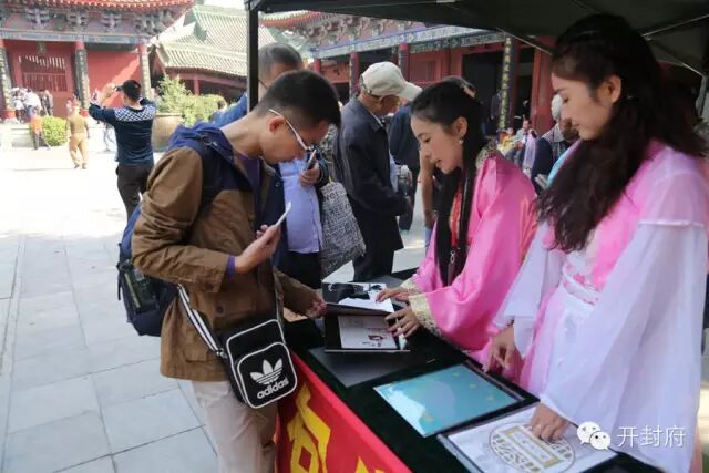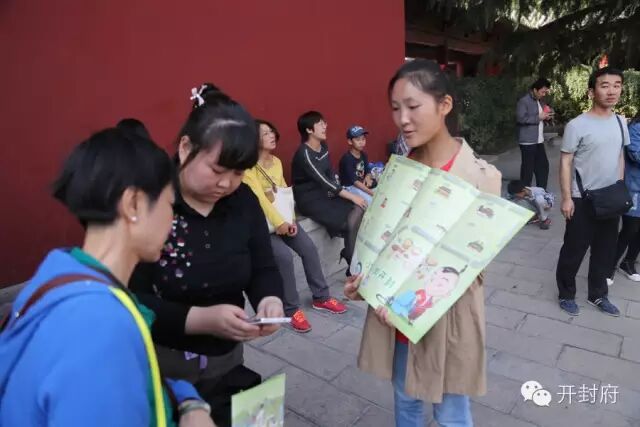 国庆期间开封府全员一线上岗,上班时间从早7点到晚7点,全天对全园进行安全巡视,定人定点对广大游客进行全程监护和安全疏导;为应对旅游高峰游客购票难的问题,景区售票窗口增加一倍,对军人、老年人、残疾人提供免费入园的优惠政策;景区的游客中心为游客提供免费寄存、服务咨询、免费茶水、轮椅等基础服务;黄金周前对景区讲解员进行全方面培训,为游人提供专业的讲解。以饱满的热情和优质的服务微笑迎客。