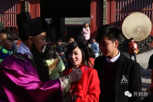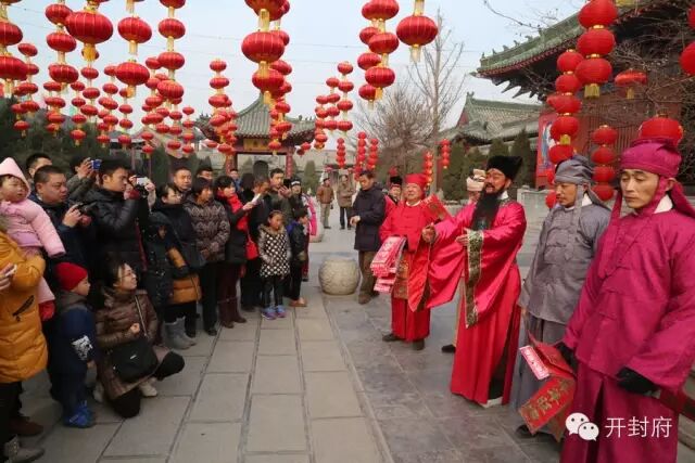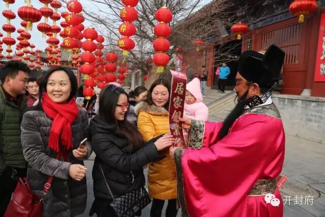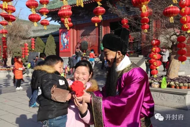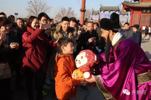 大年初一,开封府包大人携众衙役开门迎宾。来自五湖四海的游人齐聚开封府府门广场。