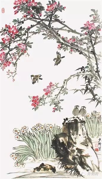 在包公湖畔的开封府内,有一座集中展示包公刚直不阿、秉公审案的大型厅堂——梅花堂。走入梅花堂正门左行,西墙上一巨幅国画作品便映入眼帘,格外引人注目。画面上,梅花绽放,水仙怒放,山石起伏,流水潺潺,尤其是画中的梅花,凌寒傲风,铁骨铮铮,充分展现出了“花中四君子”之一梅花的独有气质与风骨。这便是出自中国工艺美术大师王少卿之手的一幅力作,由他专门为开封府梅花堂创作的巨幅国画作品《铁骨冰心》。