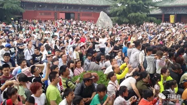 五一小长假接待游客比往年增长许多,特别是自驾游和网络售票旅游较比往年成倍翻翻的形式。迎来了开封府的客流高峰,公园内人山人海,人潮涌动热闹非凡,游客爆满,呈现“井喷”趋势。游客们观看具有特色历史文化的表演,不少游客拿出手机或相机不停地拍摄记录表演与公园的景色,场面热闹沸腾。在高峰期间公园停车场也全部停满,各地的私家车整齐有序地停放着,一眼望过去场面蔚为壮观。