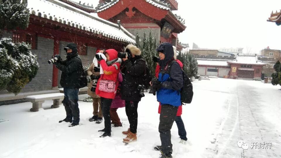 2018年1月4日星期四期盼几天的大雪如约而至,开封府一大早就迎来开封市大批摄影爱好者。