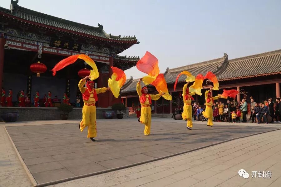 景区春节期间为广大游客奉献全天13场精彩演出,为加强春节的气氛在初一至十六期间,大头舞、旱船、秧歌等民俗民间节目,在开封府院内巡游并与游客互动。