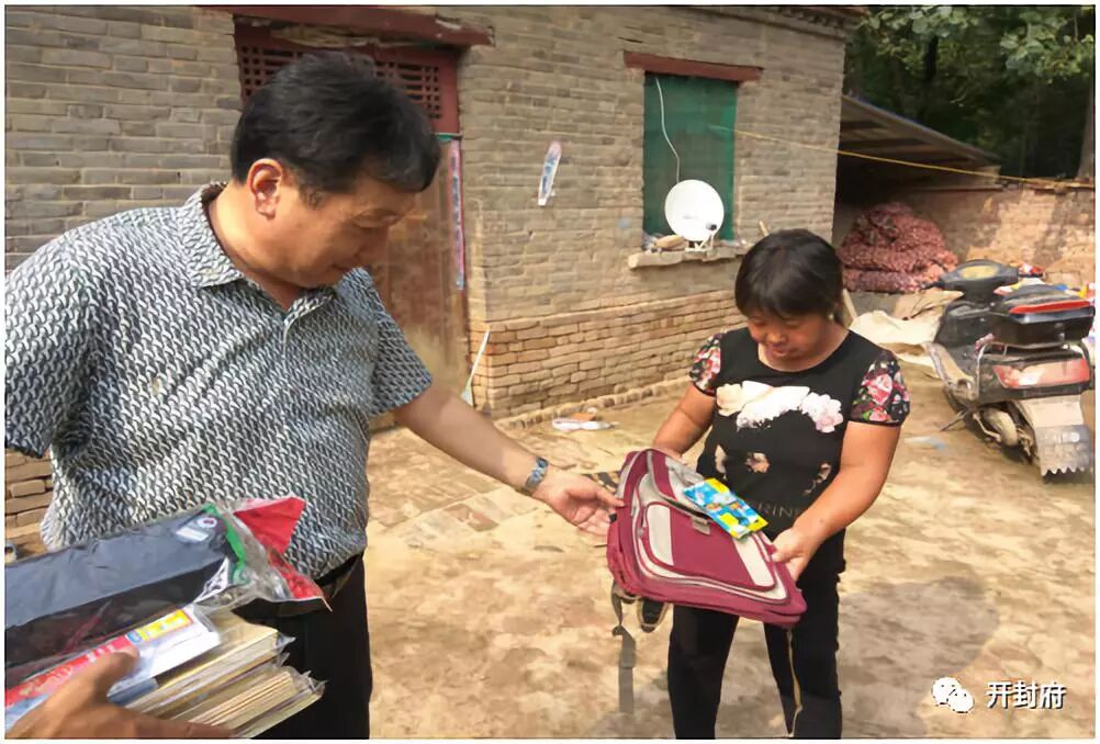 随后,段朝现董事长又到开封府景区结对帮扶的贫困户李右真家中进行了慰问。在贫困户家中,开封府董事长段朝现、副总经理修振明在详细了解她的家庭情况、健康状况、经济来源、子女上学和生活开支等情况,并耐心询问了其目前存在的主要困难和对今后生产、生活方面的打算和诉求,得知李右真家中因今年大蒜价格偏低,仍有两千多斤的大蒜未售出的情况后,段朝现董事长当场表示,销售如有困难,开封府景区愿意帮助其销售,并指出接受教育不仅是孩子自身的出路,同时也是家中摆脱贫困的出路,同时鼓励李右真能够克服困难,支持孩子上学,家里在生产、生活上有任何困难可以随时与景区联系,景区会尽可能提供必要的帮助。景区一定会在资金和就业等方面尽可能的给予更多的资助和帮助,但同时也希望贫困户自身能够树立信心,克服困难,支持孩子上学,争取早日脱贫。并给李右真正在大魏店希望小学读五年级的儿子带来了书包、笔和作业本等学习用品。段朝现董事长对李右真多年来能够坚持让儿子上学表示肯定,并耐心询问了李右真家中目前存在的主要困难和对今后生产、生活方面的打算和诉求。