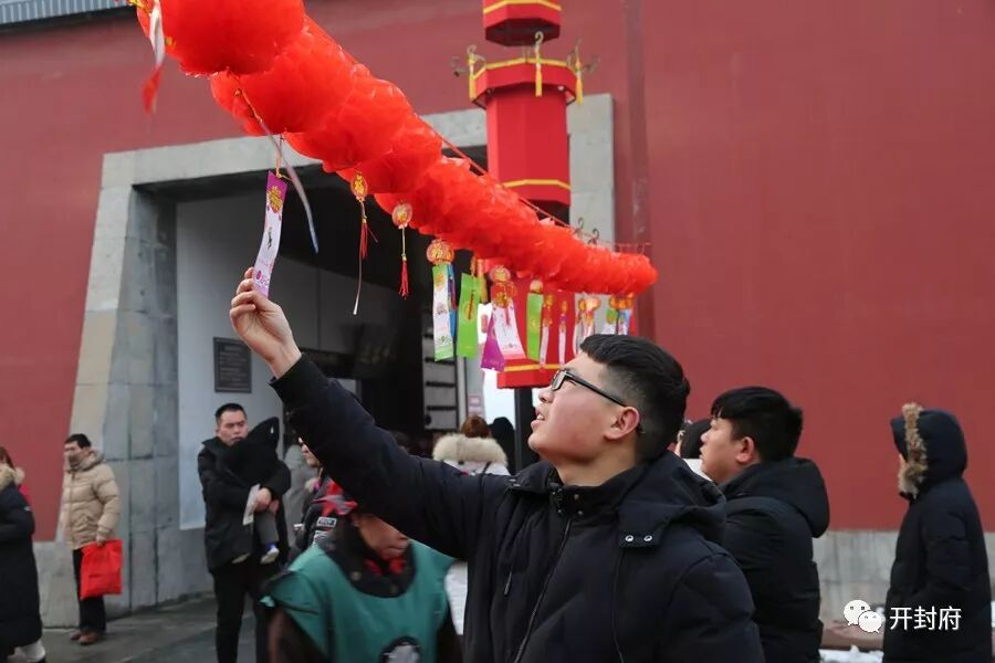 正月里面都是年,开封府景区游人如织的火爆场面仍然延续。农历正月十五元宵佳节,开封府内张灯结彩,喜庆红火,年味依旧。开封府新春期间的节日活动也将在这一天达到高潮。在开封府的仪门前举行的“元宵佳节打灯谜”活动。包大人亲临现场,为答对的游人挂上奖牌、颁发像章,送上丰富的节日大礼。