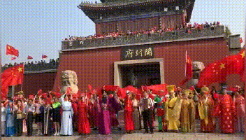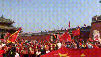 今天是国庆假期的第一天,早上八点四十分在府门广场进行了新中国成立70周年的纪念活动。由10名护旗手高举巨幅国旗,出生于1949年10月1日与共和国同岁的靳军成先生用萨克斯演奏 “我和我的祖国” 同来自祖国四面八方的游客共同庆祝祖国70华诞,祝福伟大的祖国。