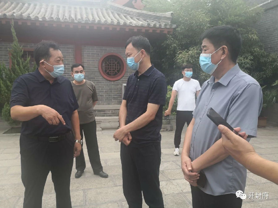 8月12日,黄玉国副市长、文广旅局局长魏培仕等一行到开封府调研落实布置疫情防控工作。